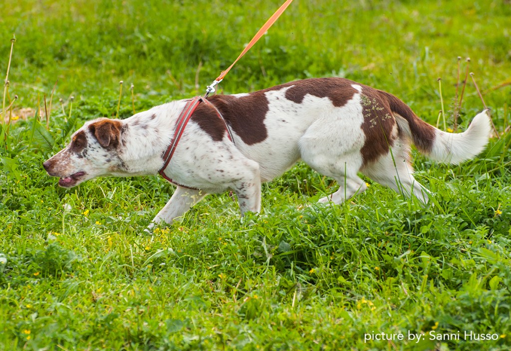 Timi is representing american cattle bred border collie as its best. This dog has tons of self-confidendence. He works fearlessly any animals of all size or type. He also keeps his idea of situations most often better than handler´s, so it calls nerves to train and work with him. We hope Timi will pass strong spirit and confidence to his offspring. Timi loves tasks which give a dog independent part, like item searching & tracking.