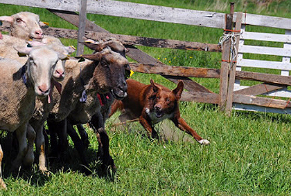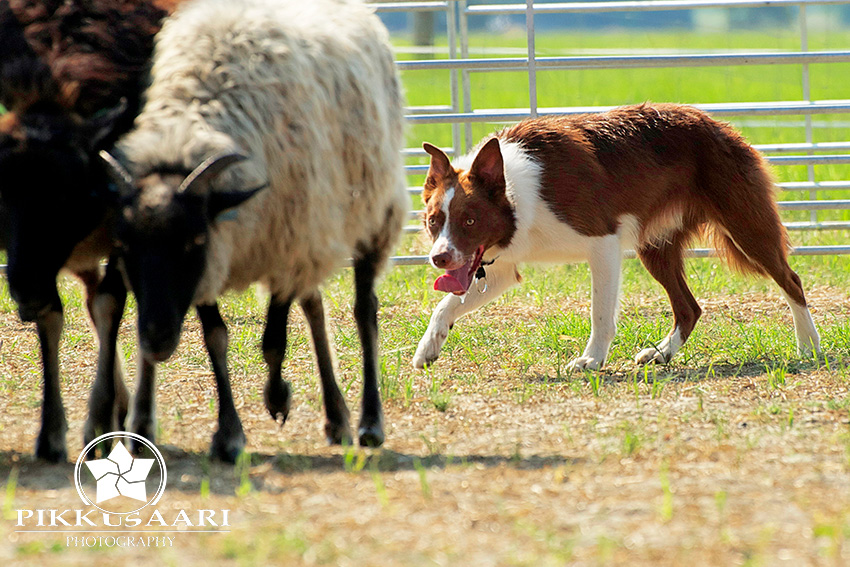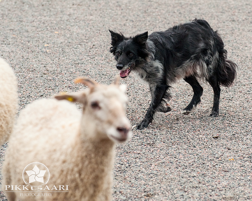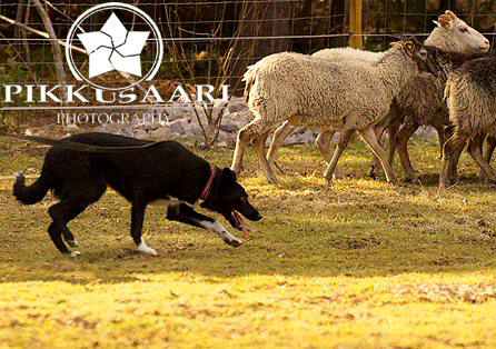 Zepp has become very keen on sheep since very early age. Ever since he has surprised over and over agan by intense work. It has called lots of determination though training him for such strong instinct. Zepp keeps all sized flocks tightly under his eyes, and he can be somewhat scary to sensitive animals.