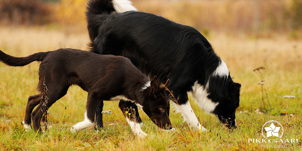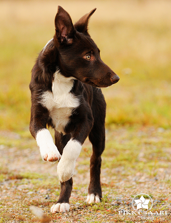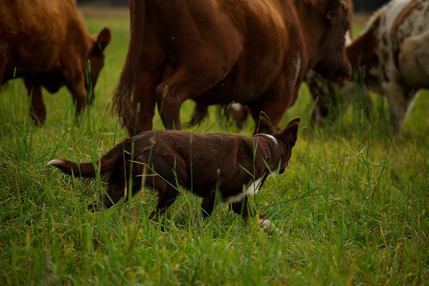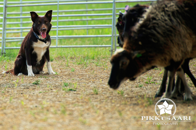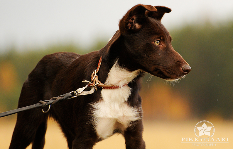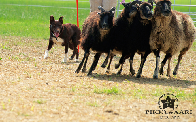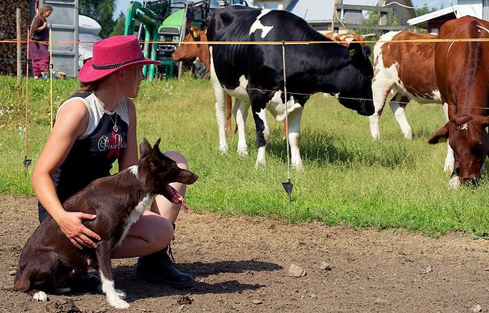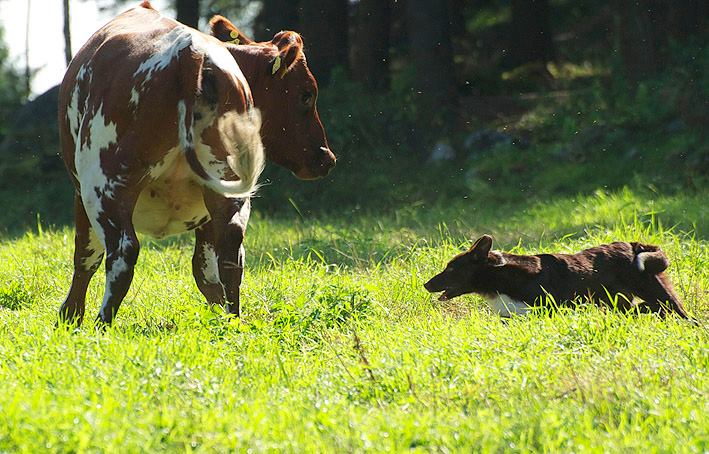 Suey has arrived in Finland in summer 2008. Since the first day here she has proven to be a brave and fearless pup. Herding with her has been started at rather young age, and very fast it was clear she is a natural talent in it. She can herd any animals from poultry to cattle and always reads animals well. Cattle is her favourite though. With them, she will hit both ends with no hesitation. I would say Suey is really waiting for situations when an animal would mentally challenge her. She absolutely loves that! Never has she been kicked by a cow mainly because of her good awareness in situations and animal reading skills.
