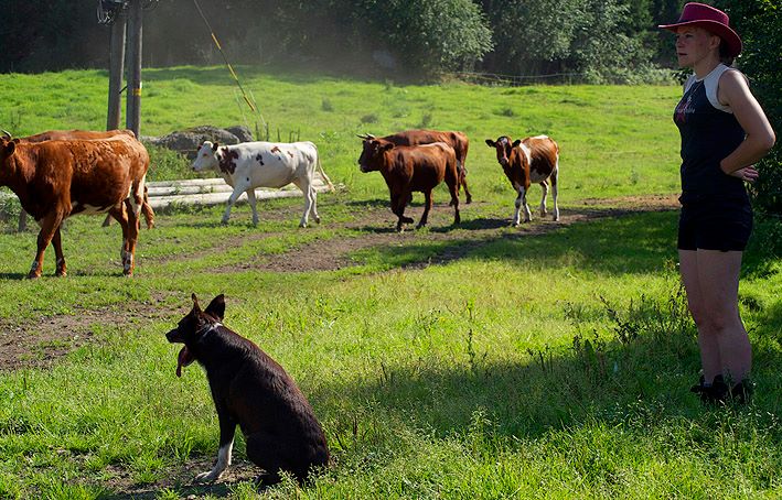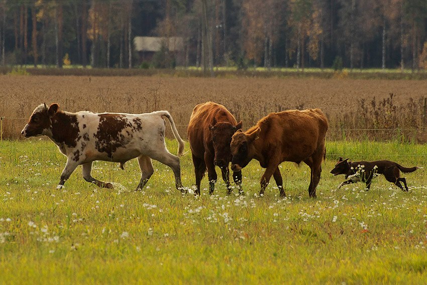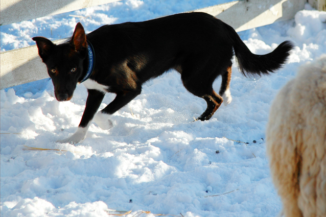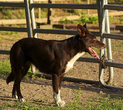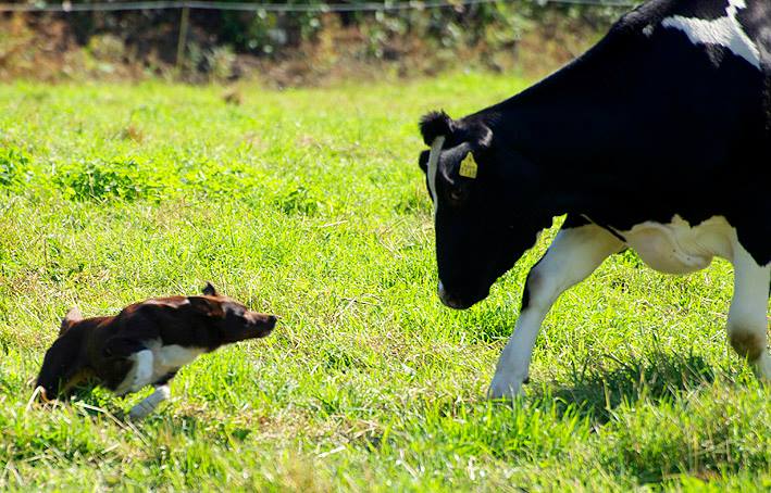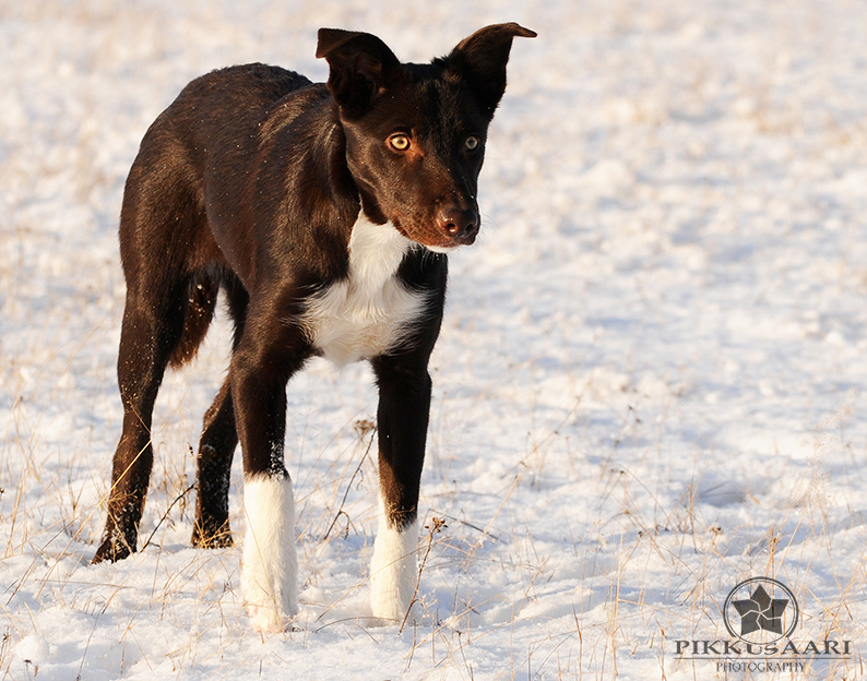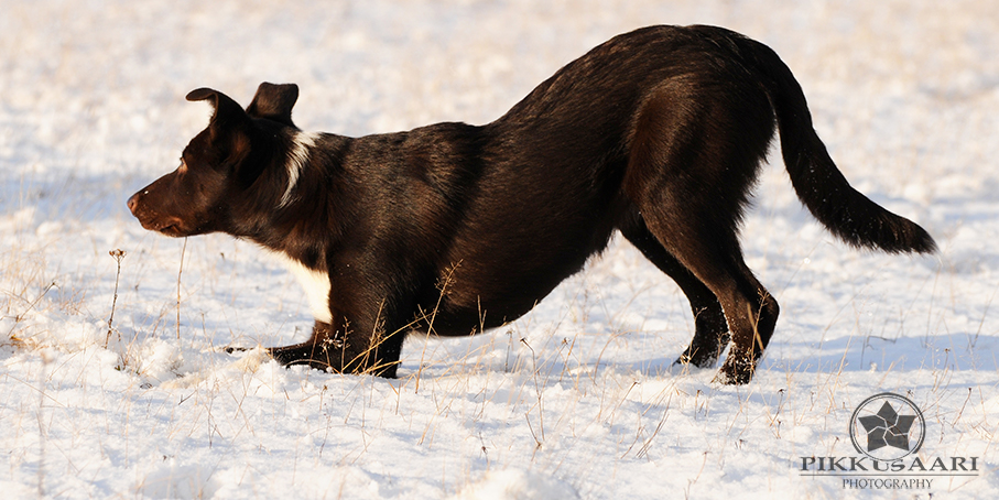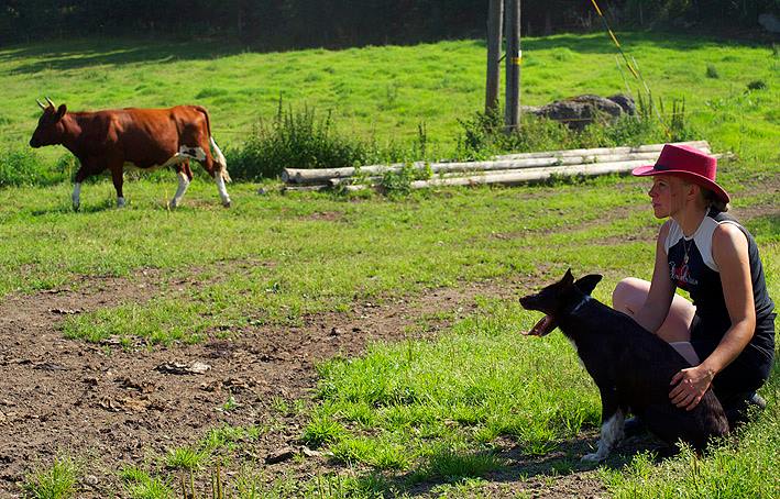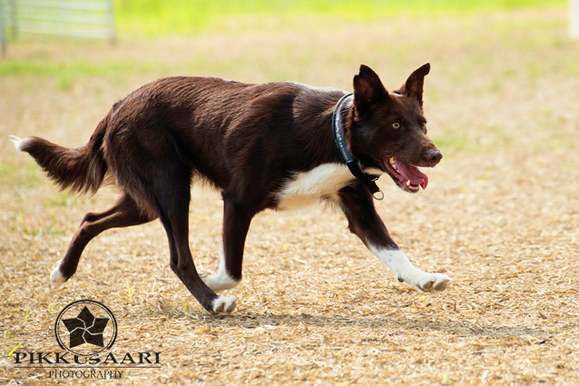 Suey has arrived in Finland in summer 2008. Since the first day here she has proven to be a brave and fearless pup. Herding with her has been started at rather young age, and very fast it was clear she is a natural talent in it. She can herd any animals from poultry to cattle and always reads animals well. Cattle is her favourite though. With them, she will hit both ends with no hesitation. I would say Suey is really waiting for situations when an animal would mentally challenge her. She absolutely loves that! Never has she been kicked by a cow mainly because of her good awareness in situations and animal reading skills.