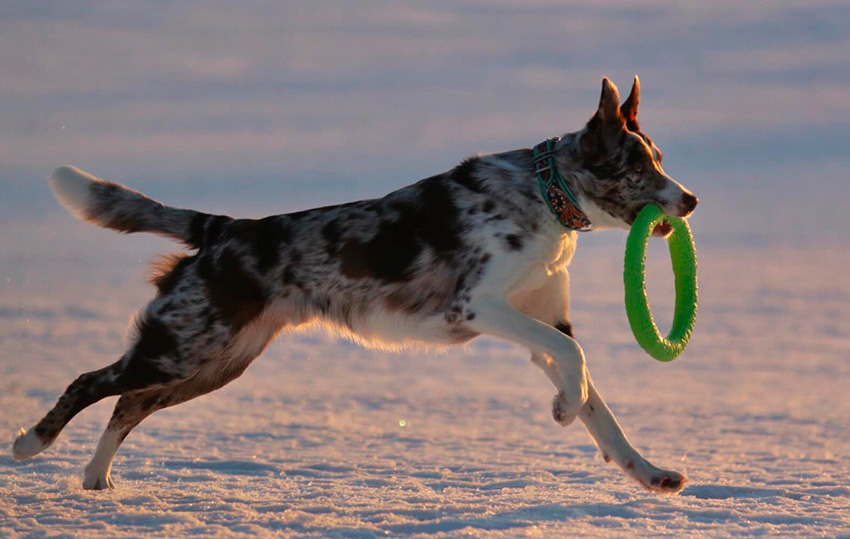 Derry has been started with sheep and cattle. His hobbies are agility and canicross. Derry moves with long gallop, works with independent attitude and most often thinks he knows the best how to do things.