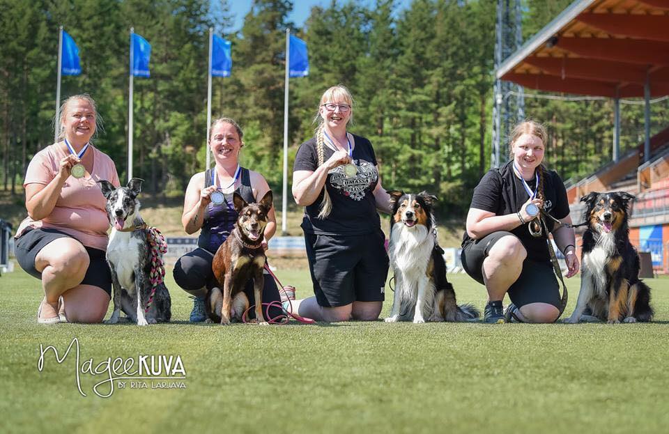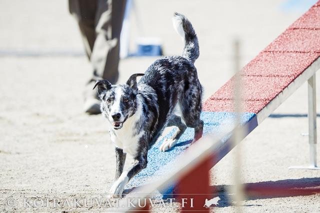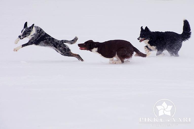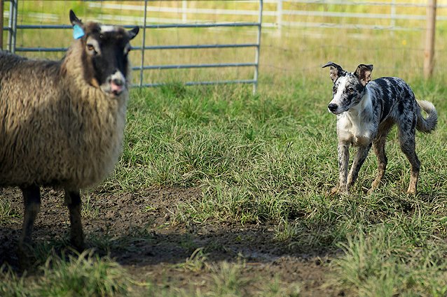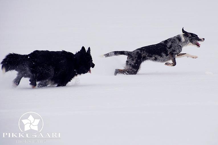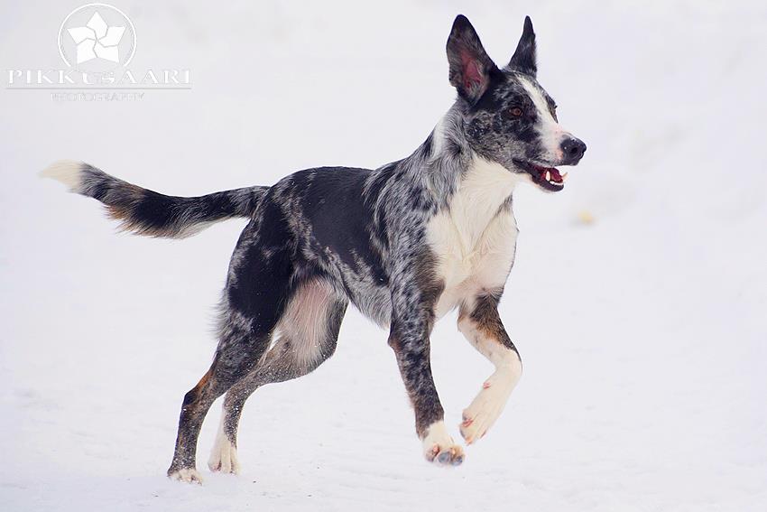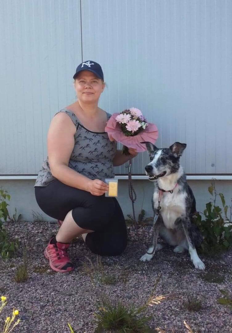 She can smell water from kilometers away and water jumping is her favourite thing! In herding she is focused, intence and reliable. She moves cattle guite easy and she has strong eye with sheep. Balances sheep nicely to me and drive is good. I can trust her to do the work.